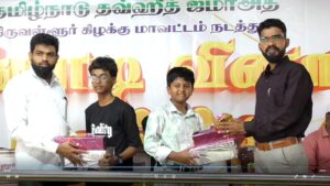 திருவள்ளூர் கிழக்கு மாவட்டம் சார்பாக “முன்மாதிரி முஸ்லிம் இளைஞர்கள்” செயல் திட்டத்தை முன்னிட்டு மாவட்ட அளவிலான வினாடி வினா நிகழ்ச்சி மாவட்ட தலைவர் சகோ. மாலிக் பாஷா அவர்கள் தலைமையில் புங்கம்பேடு பள்ளிவாசல் அரங்கத்தில் நடைபெற்றது.