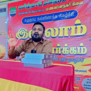 தமிழ்நாடு தவ்ஹீத் ஜமாஅத் திருவள்ளூர் மேற்கு மாவட்டம் மணவாளநகர் கிளை சார்பாக இன்று 02.11.2025 இஸ்லாம் ஒர் இனிய மார்க்கம் பிற மத சகோதர சகோதரிகளுக்கான சமூக நல்லிணக்க கேள்வி பதில் நிகழ்ச்சி நடைபெற்றது இதில் மக்களின் கேள்விகளுக்கு TNTJ மாநிலத் தலைவர் சகோதரர் R.அப்துல் கரீம் M.I.Sc அவர்கள் பதிலளித்தார்கள்..